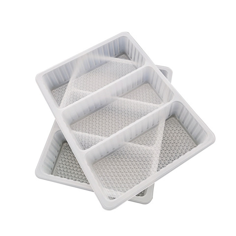 カスタム食品ブリスター包装トレイ3グリッドビスケットチキンロールケーキ透明ブリスターインナートレイ